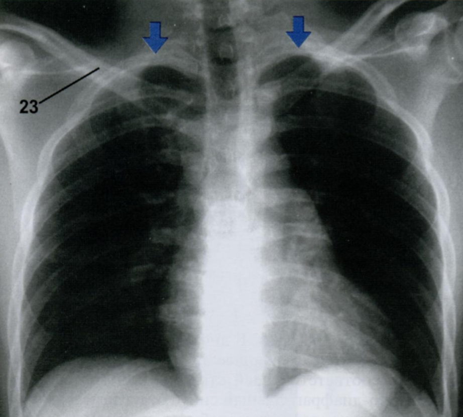У лежачего пациента (предположим, в отделении ОРИТ) тоже будет отмечаться расширение легочных сосудов в верхних и верхушечных отделах легких. Не путаем с патологическим полнокровием, как при отеке легких, например.
