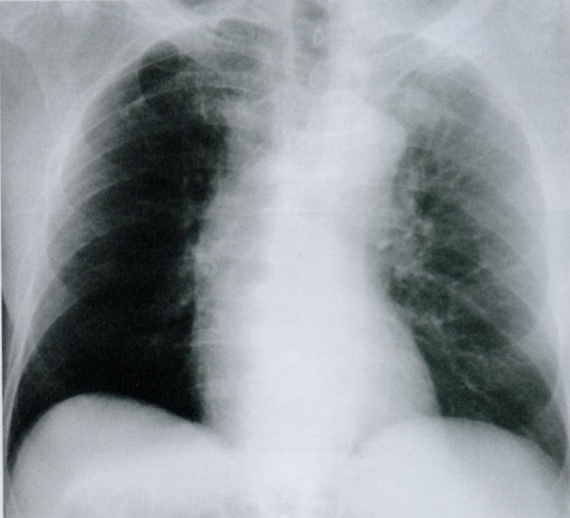 Если мы выполним Rx органов грудной клетки на выдохе, то из-за высокого стояния куполов диафрагмы, сердце будет казаться приподнятым и расширенным, а сосуды легких сдавлены и полнокровны.
