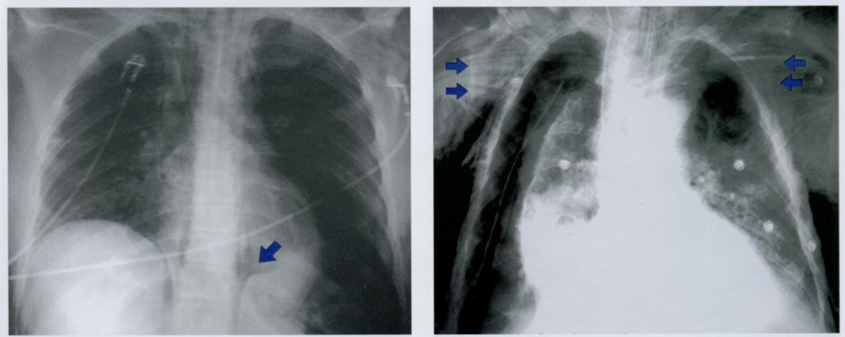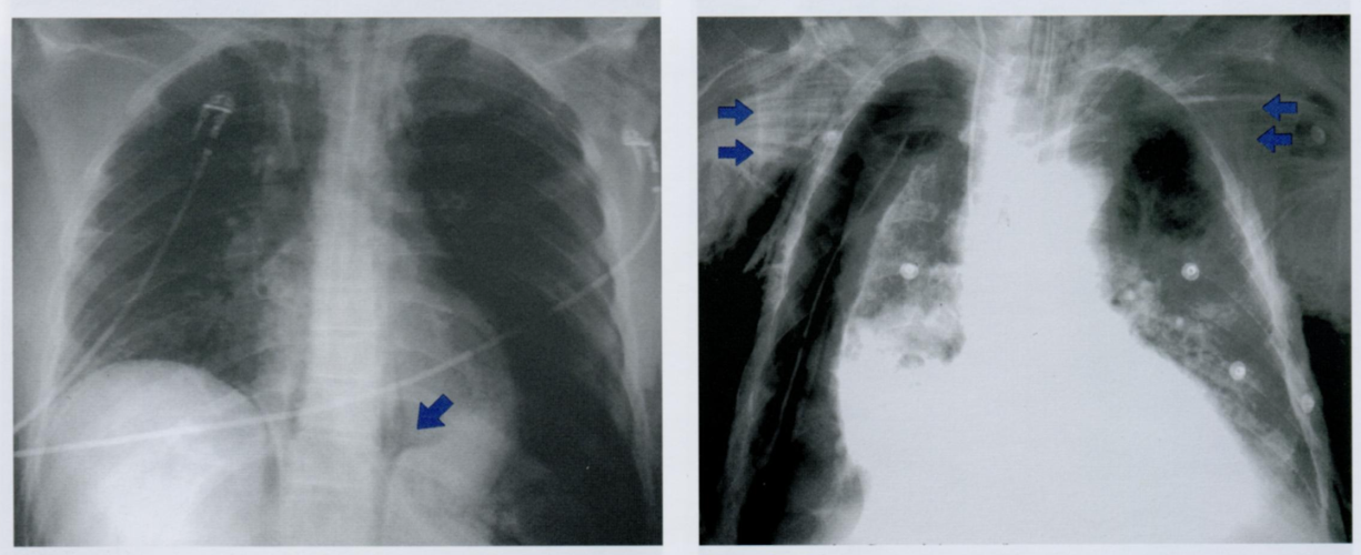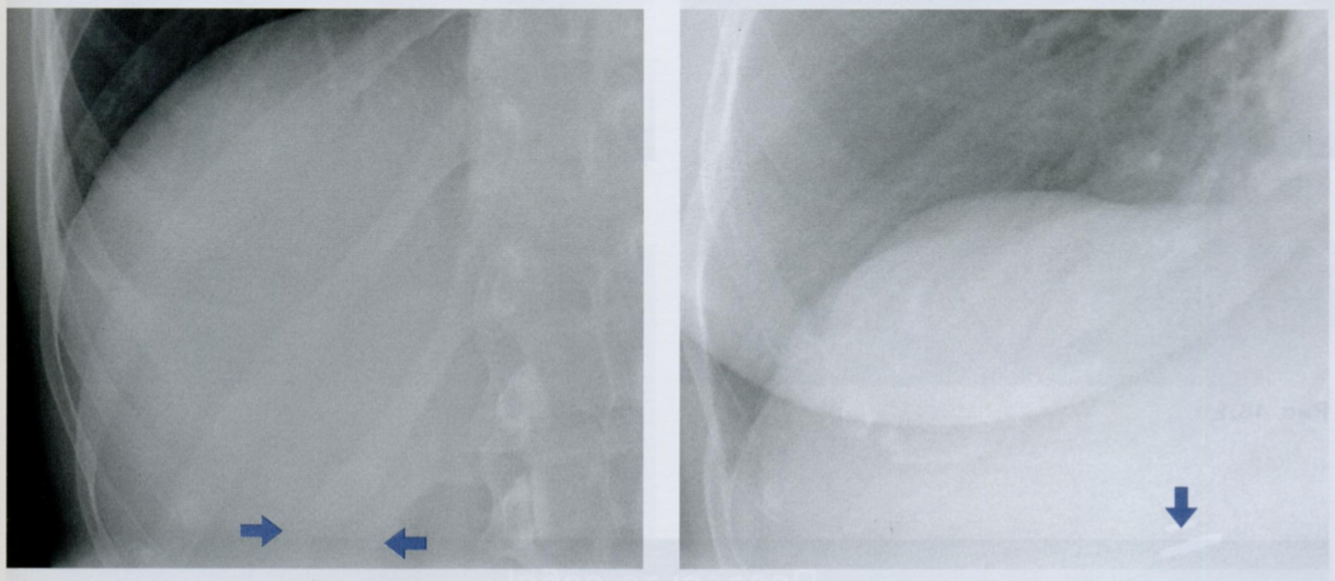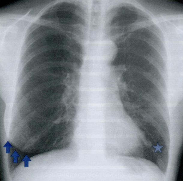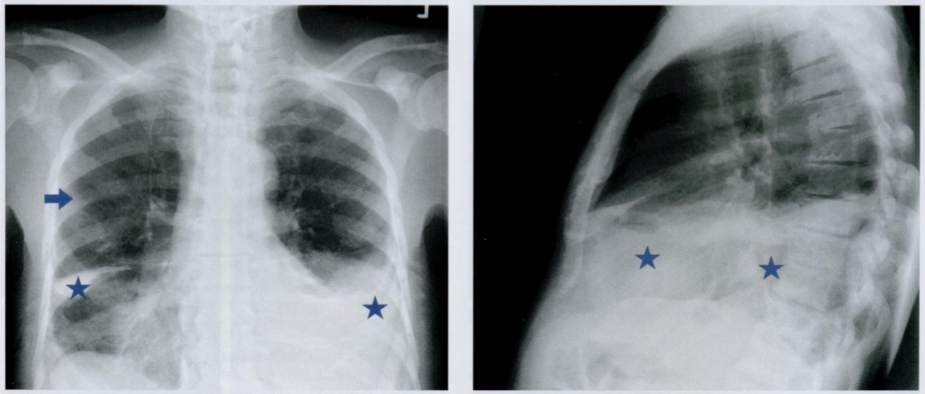 Помимо изменений сердца, легких, мягких тканей и костных структур при Rx грудной клетки также следует обращать внимание на верхние отделы брюшной полости.