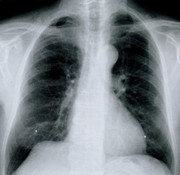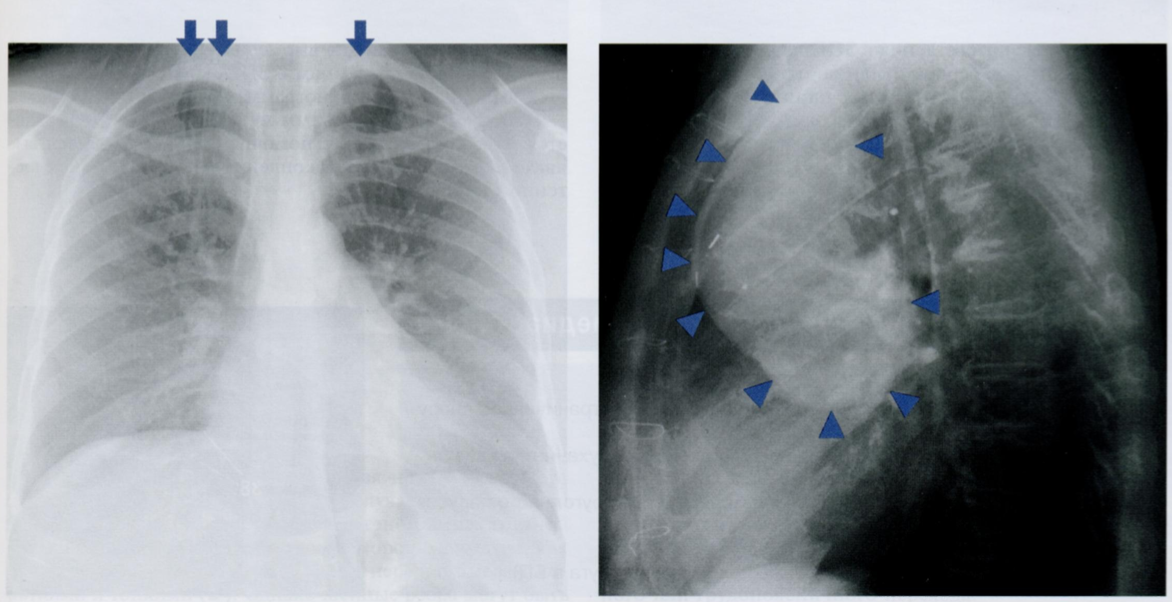 На снимках воздух вдоль контуров сердца + воздух между волокон грудных мышц