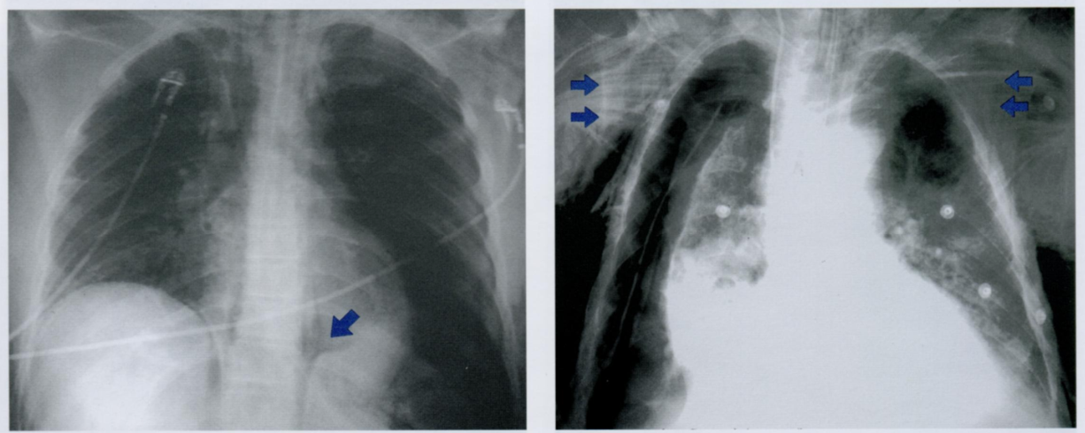 Важно помнить причины пневмомедиастинума (спонтанный, травматический, неопластический, ятрогенный и воспалительный) + Rx признаки