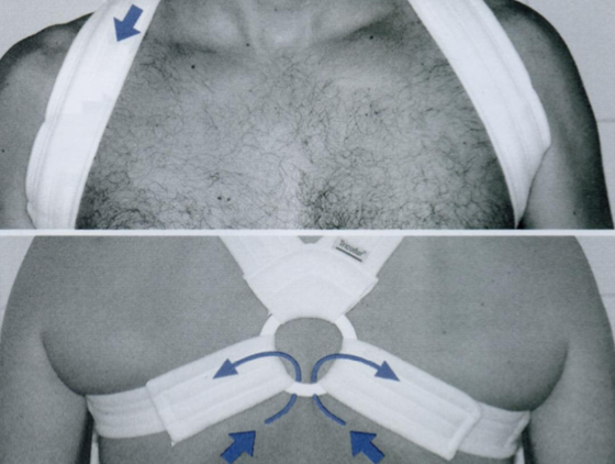 На картинке изображена 8-образная повязка с направлением разворота лопаток для фиксации фрагмента ключицы книзу.