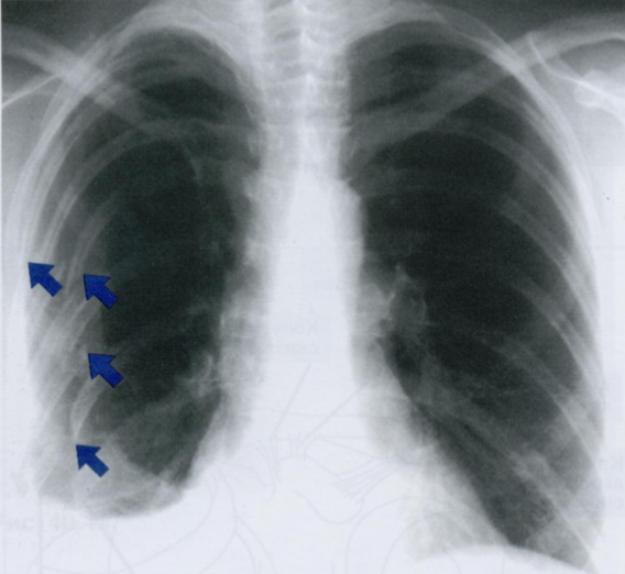 Ключевой момент - не ошибиться, принимая уменьшение прозрачности с одной стороны за выпот или внутрилегочное образование.