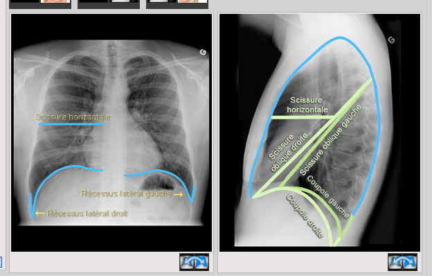 3 - Si le patient est en inspiration maximale: apex de la coupole diaphragmatique la plus haute, habituellement la droite, devrait être à la hauteur de l’arc postérieur de la 10e côte