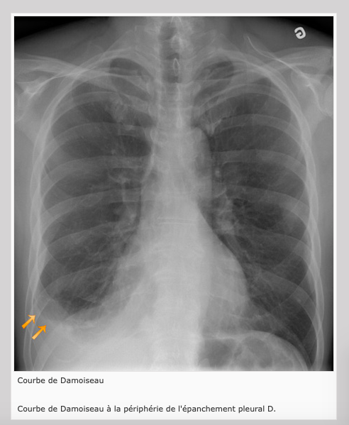 Émoussement des culs-de-sac costo-diaphragmatiques (épanchement pleural)