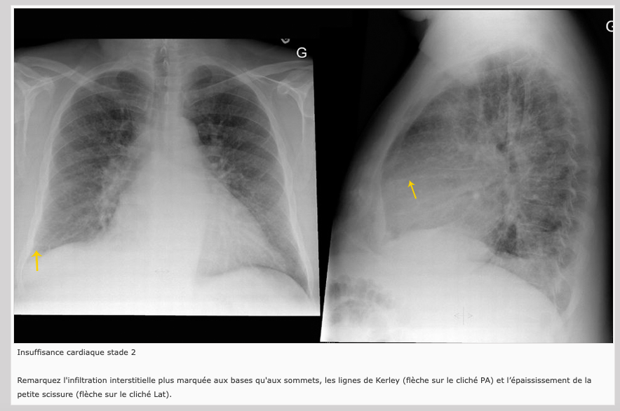 Infiltration interstitielle plus marquée aux bases (Lignes de Kerley)