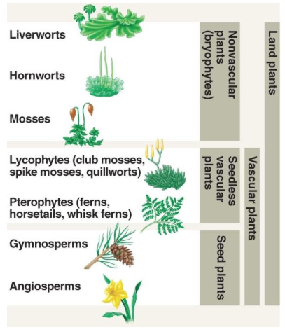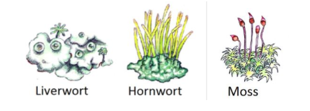 3 types non vascular plants byrophytes: