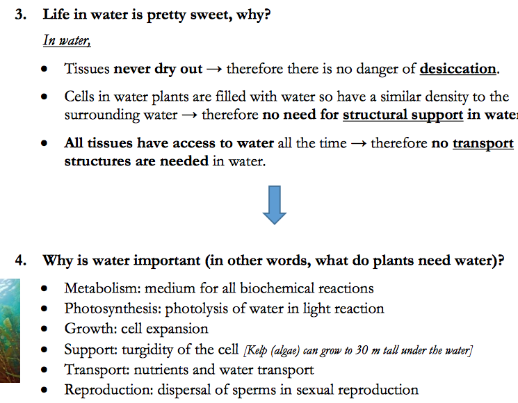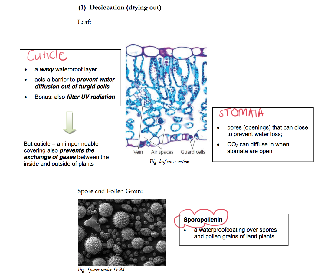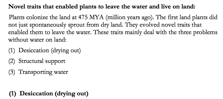 Novel traits developed by plants: DESSICATION(c+s+s) & STRUCTURAL SUPPORT AND TRANSPORTING WATER