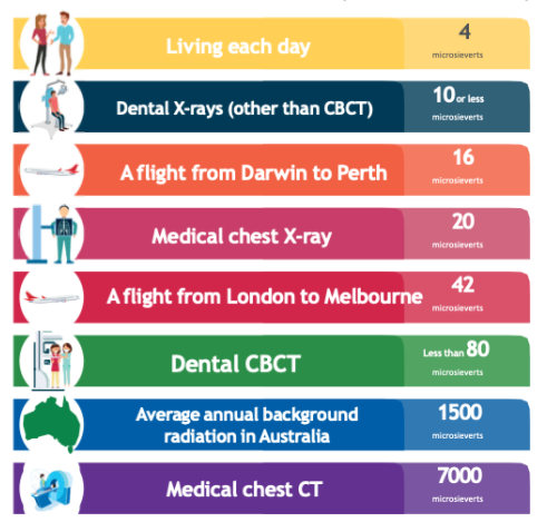Effective radiation doses of dental radiation (average in adult, microsieverts µSv)