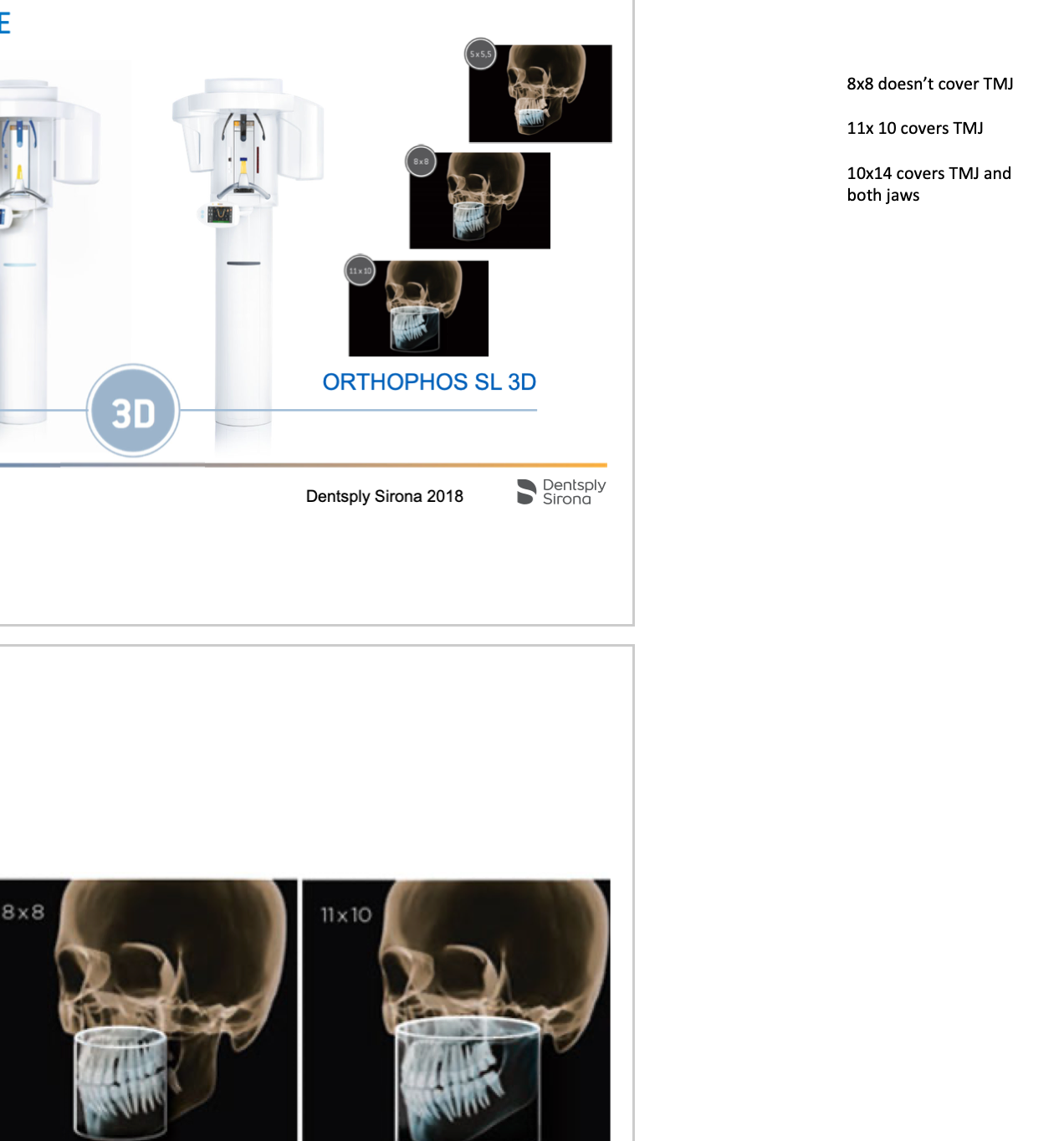 standard/medium FOV = both arches including TMJ area, smaller = arch or quadrant