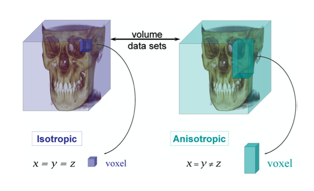 voxel - pixel with volume (vo, el = element), CUBIC in nature (in CBCT), equal in all dimensions
