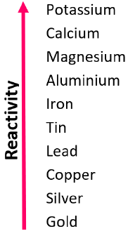 Reactivity series - reactive metals at the top, unreactive metals at the bottom.