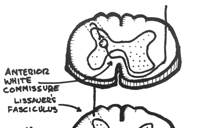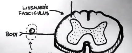 only goes up or down 2 spinal segments before SYNAPSING IN THE DORSAL HORN