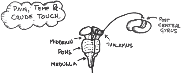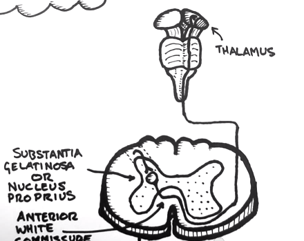 signals from the ALS get from the thalamus to the post central gyrus via the