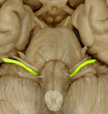 A lesion of the right optic tract causes a complete loss of vision in the left hemifield: