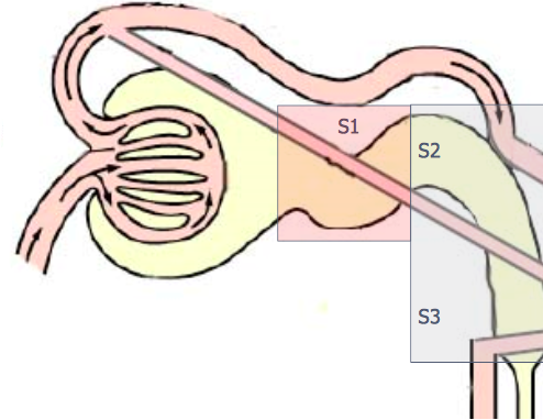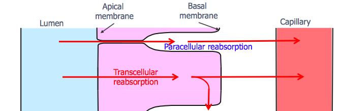 Proximal convoluted tubule – absorbs Na+ (67%) and H2O (65%)