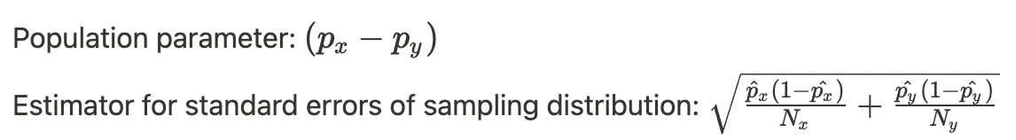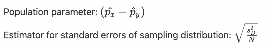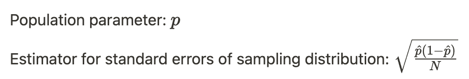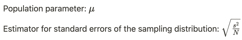 What is the population parameter and esitmator for standard error of the sampling distribution?