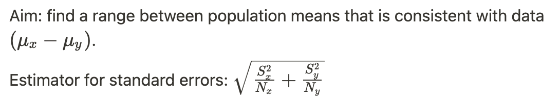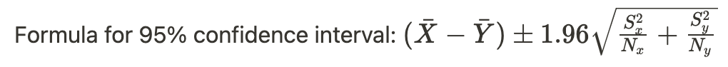 95% confidence interval for the difference in two independent means