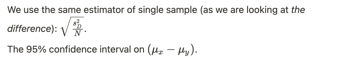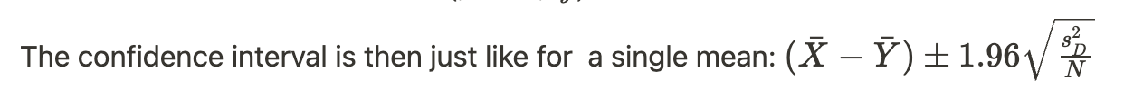 Confidence interval for the difference in two dependent mean (paired data)