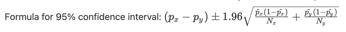 95% confidence interval for the difference in two independent proportions