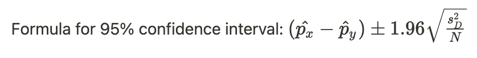 95% confidence interval for the difference in two dependent proprtions (paired data)