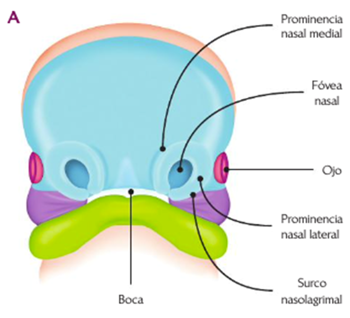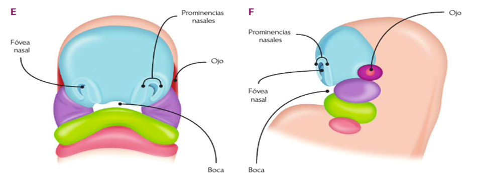 Al principio las placodas nasales son convexas hacia afuera, pero pronto se invaginan (cóncavas) en su porción central llevando a la formación de las fóveas nasales.