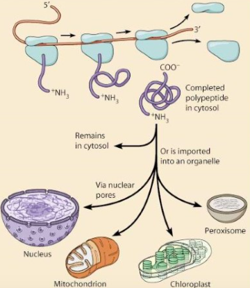 Where are proteins destined for the cytosol /posttranslational import into organelles synthesised?
