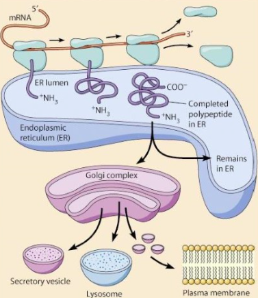 ⇒ Protein synthesis on bound ribosomes
