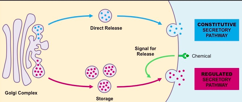 ⇒ Consitutive secretion / Regulated secretion