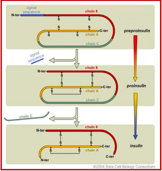 Describe the processing of preproinsulin
