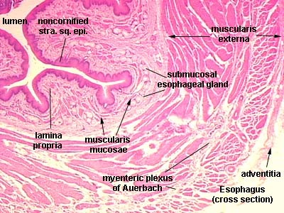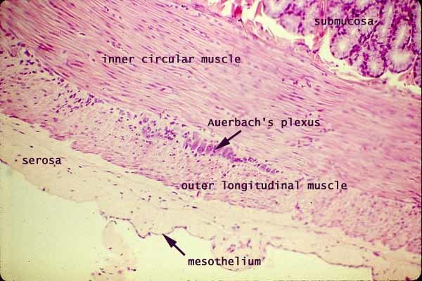 - Muscularis externa – smooth muscle layers which move food by peristalsis