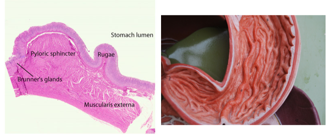 Rugae are folds of gastric mucosa, forming longitudinal ridges in the empty stomach
