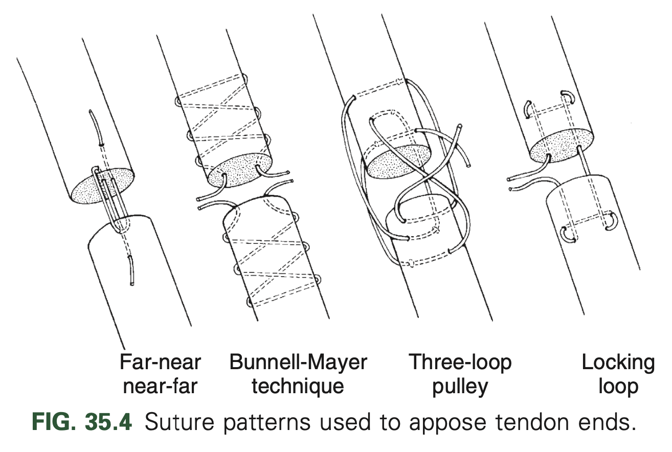 Name and draw two (2) recommended suture patterns described for approximating tendon ends.