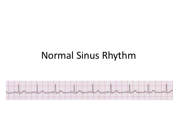 PR intervals duration 0.12 - 0.20 seconds QRS complexes duration 0.06 - 0.10 seconds 60-100bpm