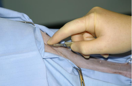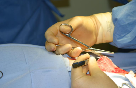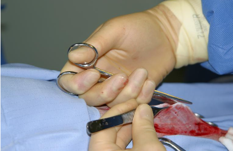 Using any grip apply pressure at 90 degrees to the direction of the motion of the blade, while other hand tenses the tissue laterally to seperate wound edges incresing cutting efficiency. Only do a single pass, to prevent jagged edges.