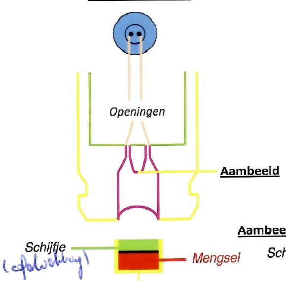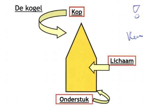 Benoem de aangeduide onderdelen van de kogel