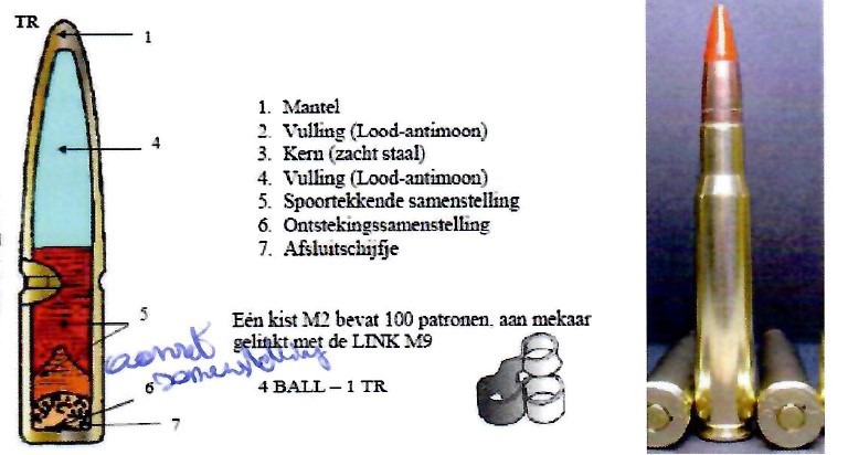 Benoem de onderdelen en de kenmerkende kleur van de .50 tracer
