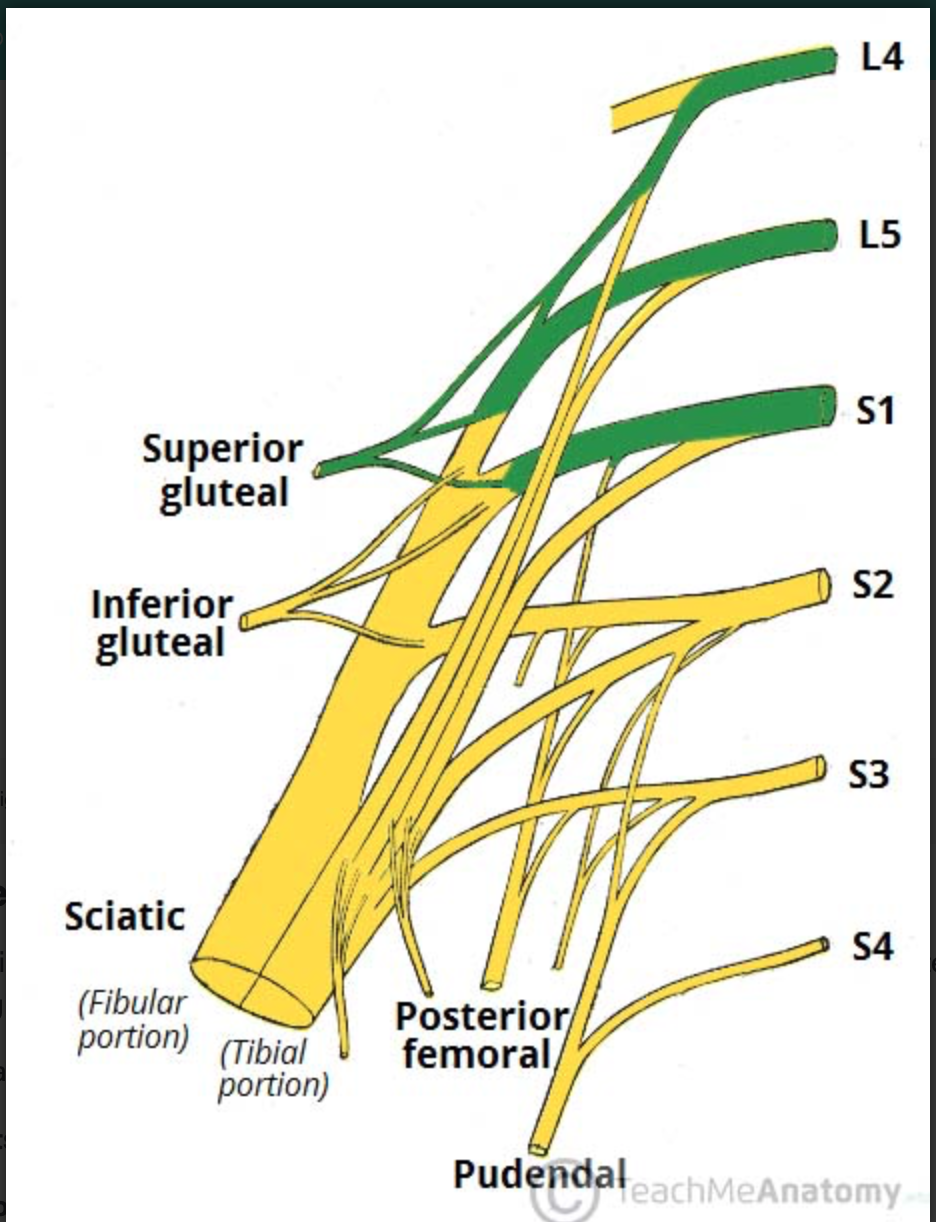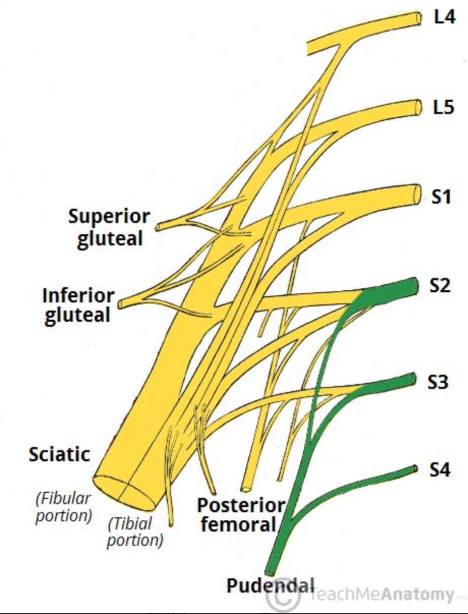 anterior rami (divisions) of the sacral spinal nerves S1, S2, S3 and S4.