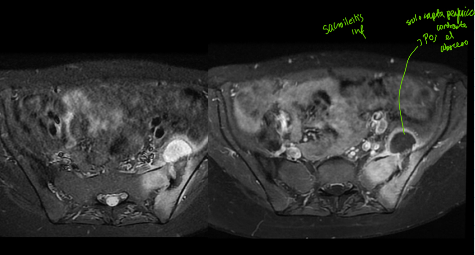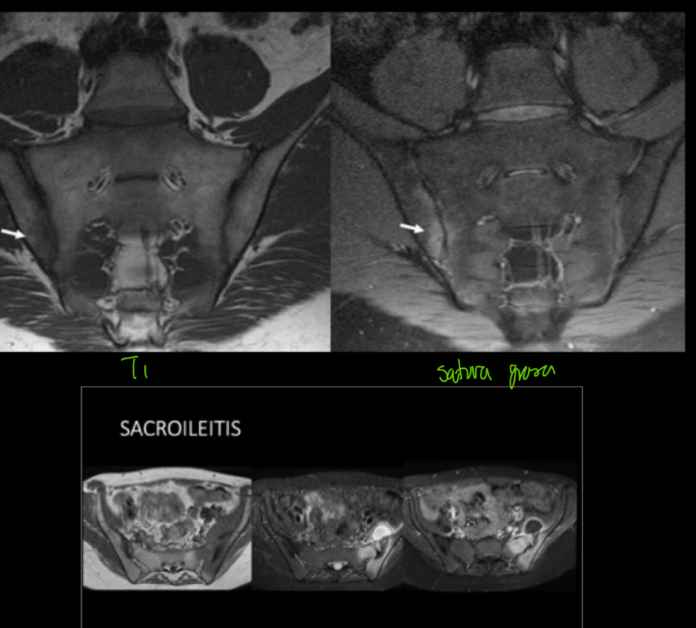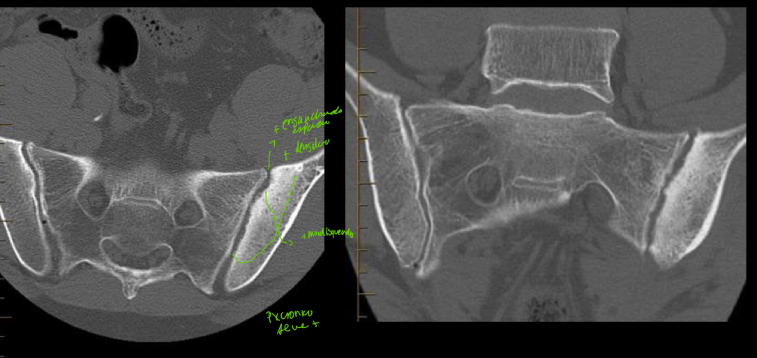- Esclerosis sacroiliaca : radiopacidad, se forma hueso