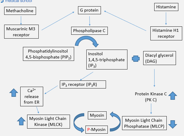What is the mechanism of action for Methacholine- and histamine-mediated contraction?