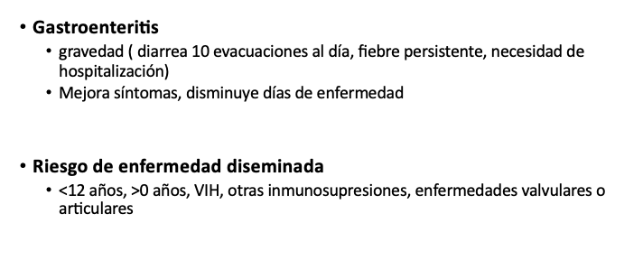 Indicaciones de Tratamiento salmonella
