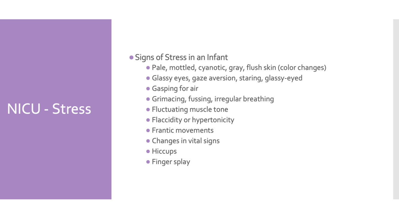 What are the signs of infant stress in the NICU?