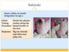 Pale or flushed skin, glassy eyes, gasping for air, grimacing, fussiness, irregular breathing, and fluctuating muscle tone.