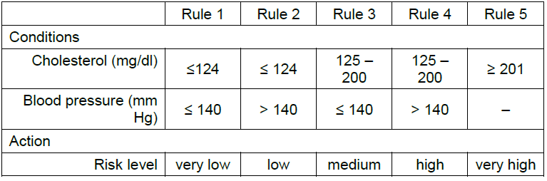 The following decision table contains the rules for determining the risk of atherosclerosis.