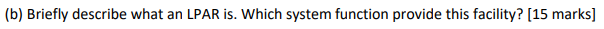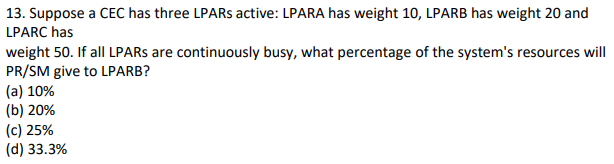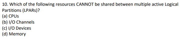 Answer: A physical machine can be partitioned into several Logical Partitions called LPARs. Each LPAR runs its own copy of the operating system. The component which provides this facility in PR/SM.