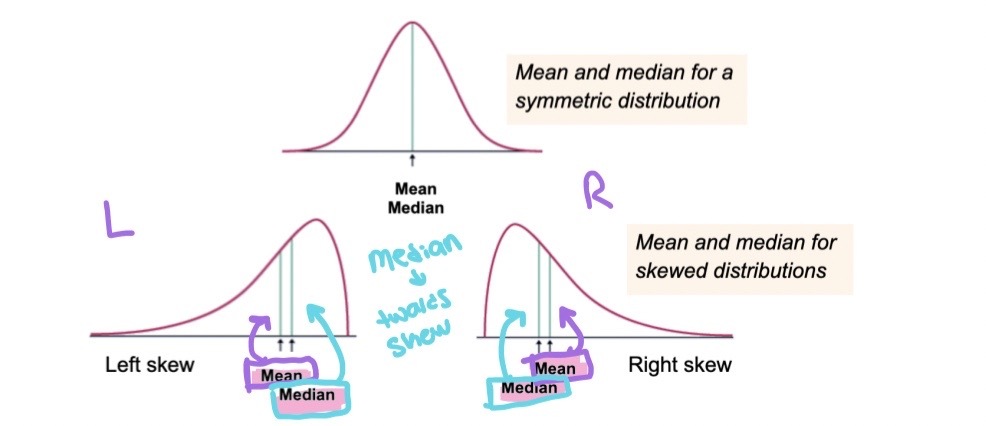 Mean (x bar) VS Median (M) and skew