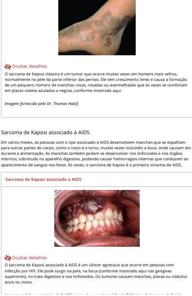 Geralmente associado ao vírus da Herpes Humano tipo 8 (HHV-8), mais comum em pacientes imunocomprometidos, como HIV/AIDS.