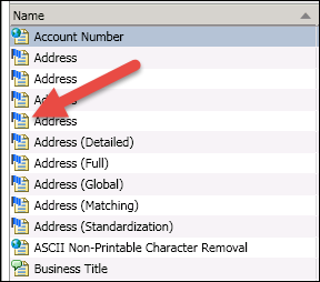 In the QKB (Quality Knowledge Base), various definitions are listed for each locale. The definitions can be “opened” where a sequence of processing will then be surfaced in a “flow” diagram. Many of the items listed in these “flow” diagrams are pointing to various files of the QKB (schemes, chop tables, phonetics libraries, regex libraries, vocabulary libraries, grammars).