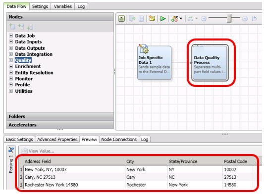 You are creating a data job to apply a data cleansing process to an input data field containing city, state and postal code data. You would like to create individual fields from the components of the data values, with the resulting data being written into individual fields for City, State/Province and Postal Code. Which node would you use to accomplish this result?