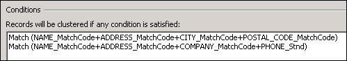 The table has many duplicate records for customers. You will use a Clustering node to find the duplicates using the conditions shown below:
